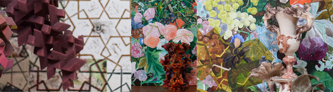 In der Malerei und im Scherenschnitt von Ergül Cengiz entfalten sich komplexe Bildsysteme, inspiriert von islamischer Ornamentik und westlichen Genres wie Landschaftsmalerei und Stillleben.